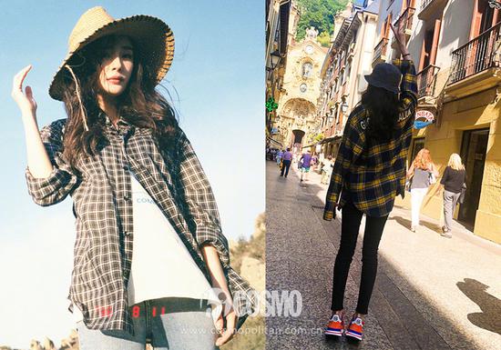 在格子衬衫的挑选上,大家的审美达到空前的一致。首先是要够肥大,比如刘雯的日牌JieDa衬衫、杨幂最爱的Doublet……通通都是男款来的,建议大家去男票的衣柜里翻一翻,还省了一笔。