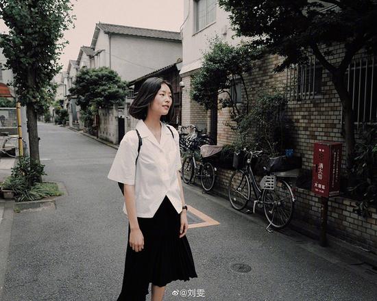 这套衬衫+百褶裙的搭配真的学院风满满啊!表姐不像是去日本旅游更像是去日本求学的。