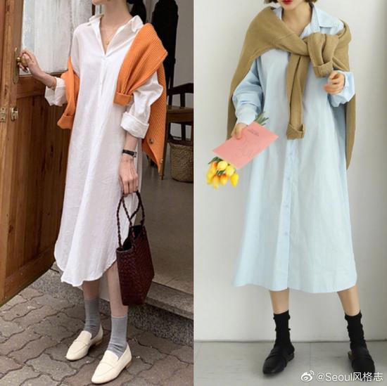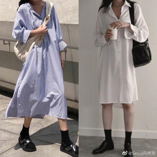 近一个月衬衫裙一直是大热单品,甚至一件白衬衫用腰带一扎都能出街。