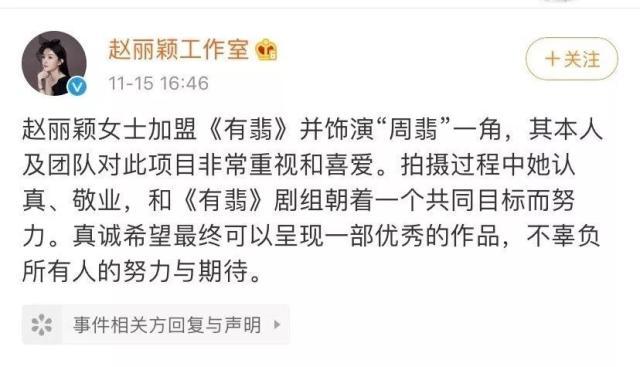 然而《有翡》剧组也只是转发了颖宝工作室的态度,而没有《有翡》官方剧组的任何态度,这一下让网友们觉得太些敷衍吧,连一句解释都没有,真实情况也没有说,就只有一句话共同努力,网友们就觉得剧组没有打算要把问题解决了。