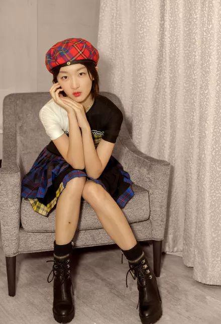 周冬雨的格纹撞色百褶裙,少女感十足~
