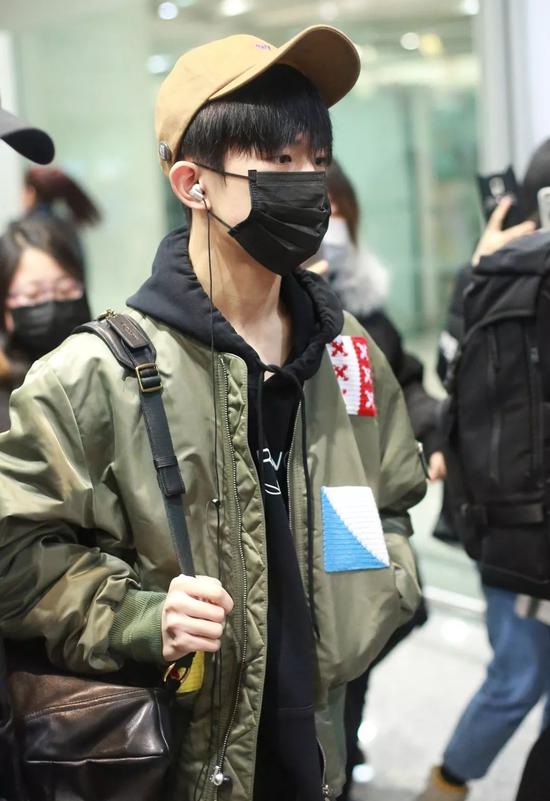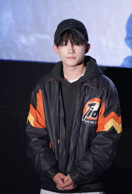 上映首日现身的易烊千玺,身着连帽卫衣搭配棒球夹克,黑色棒球帽和细碎刘海遮住眼睛