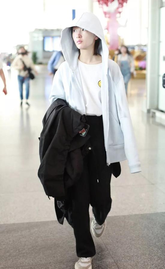 素颜时,帽衫发挥了它的大用处,就像小北的“保护色”一样。
