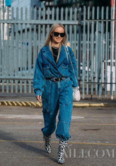 带有印花的牛仔夹克设计让原本的色彩多了层次感,不会过于繁复,也保留了牛仔单品的瞩目度,和右边将及膝靴、棒球包和金属链这些时尚元素集合的博主来说,左边博主的一身牛仔装更胜一筹。