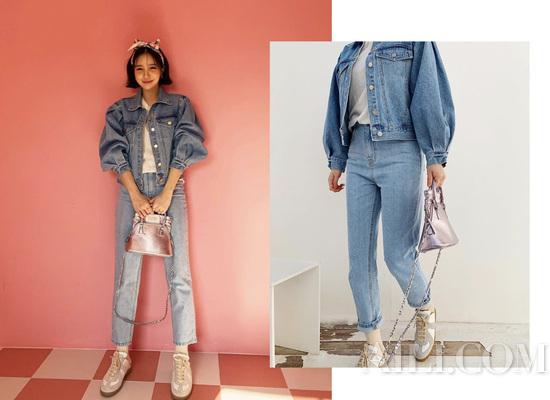 牛仔夹克融入灯笼袖的设计,将原本率性硬朗的单品加入了温柔的风格。