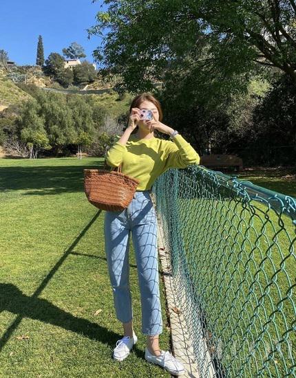 牛仔裤与亮色单品的搭配,牛仔裤可以与上衣平分天下,是色彩和风格上都达到了平衡,这时浅色的牛仔裤比深色牛仔裤应用起来效果更好。