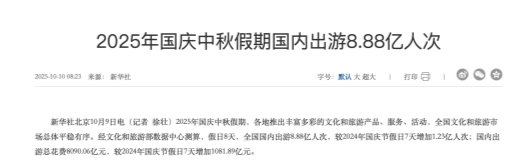 数字浪潮下的文旅新篇章:一场“游戏+”的体验升级 国庆中秋双节叠加,8天假期点燃出行热潮——全国8 88亿人次出游,旅