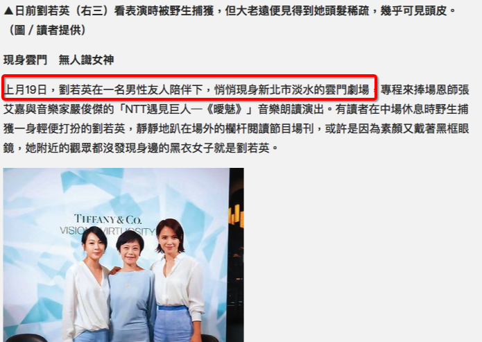11月13日,据台媒报道,有网友在10月19日时遇到刘若英,那时候她正和男性友人一同前往剧场,参加恩师张艾嘉和音乐家严俊杰一...