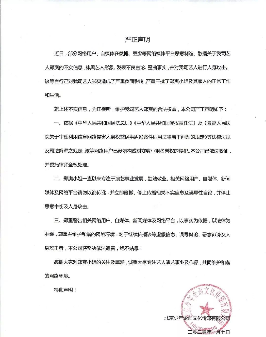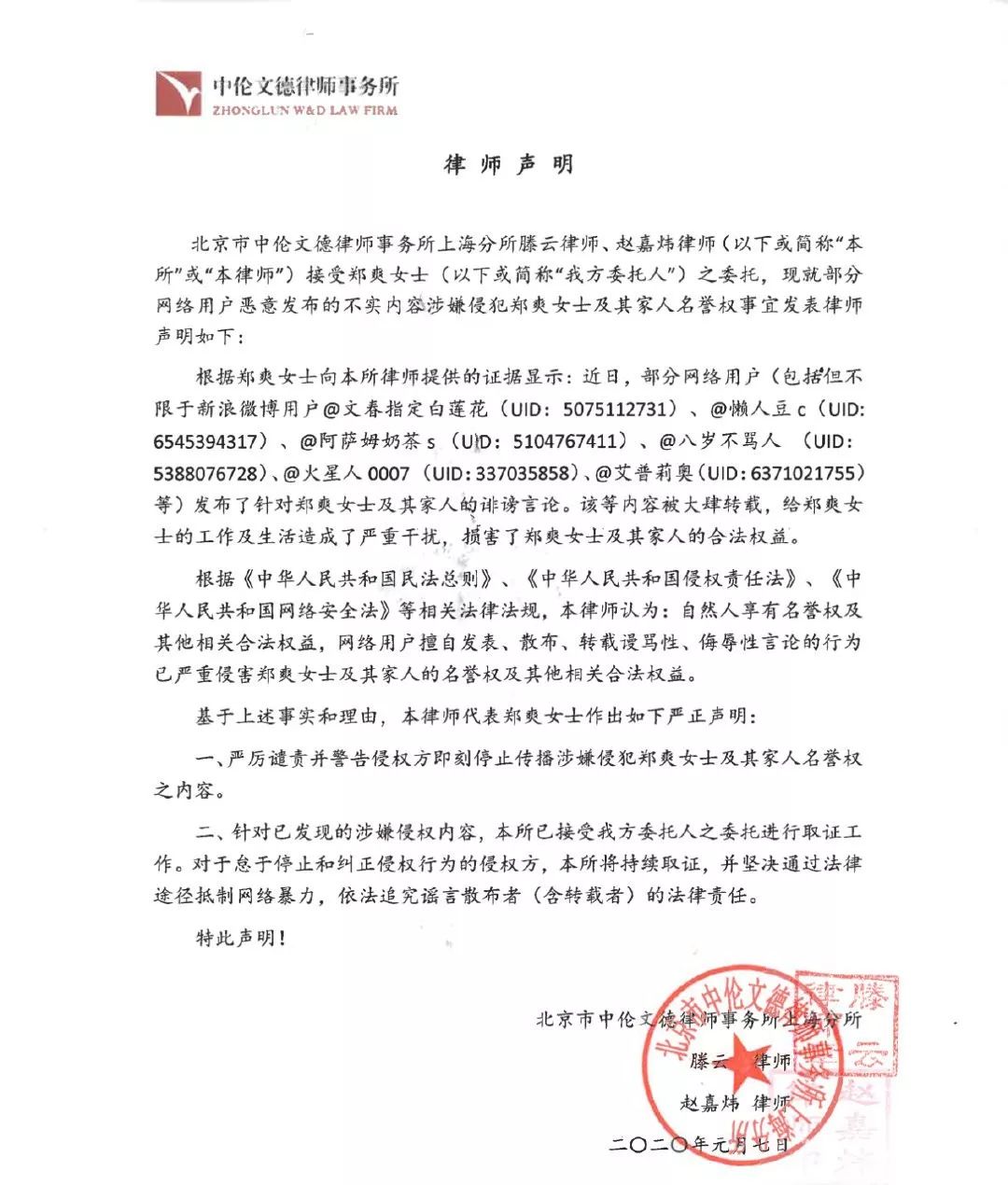 今天下午稍晚,郑爽委托的律所也发布了对微博用户侵权的声明,内容与以上分析一致。