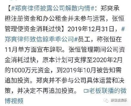 以上来自网友爆料的说法,未经证实,但是郑爽和张恒在合伙生意上确实存在矛盾,下面来看看律师的说法。在2020年元旦,郑爽律师就披露了公司解散内情,原来是跟花钱有关系。